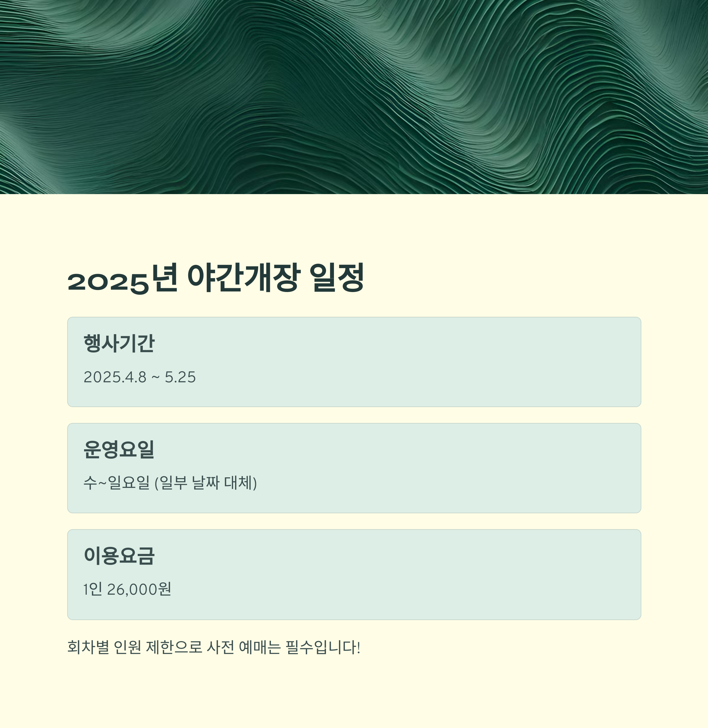 "회차별 인원 제한이 있어 사전 예매는 필수입니다!"