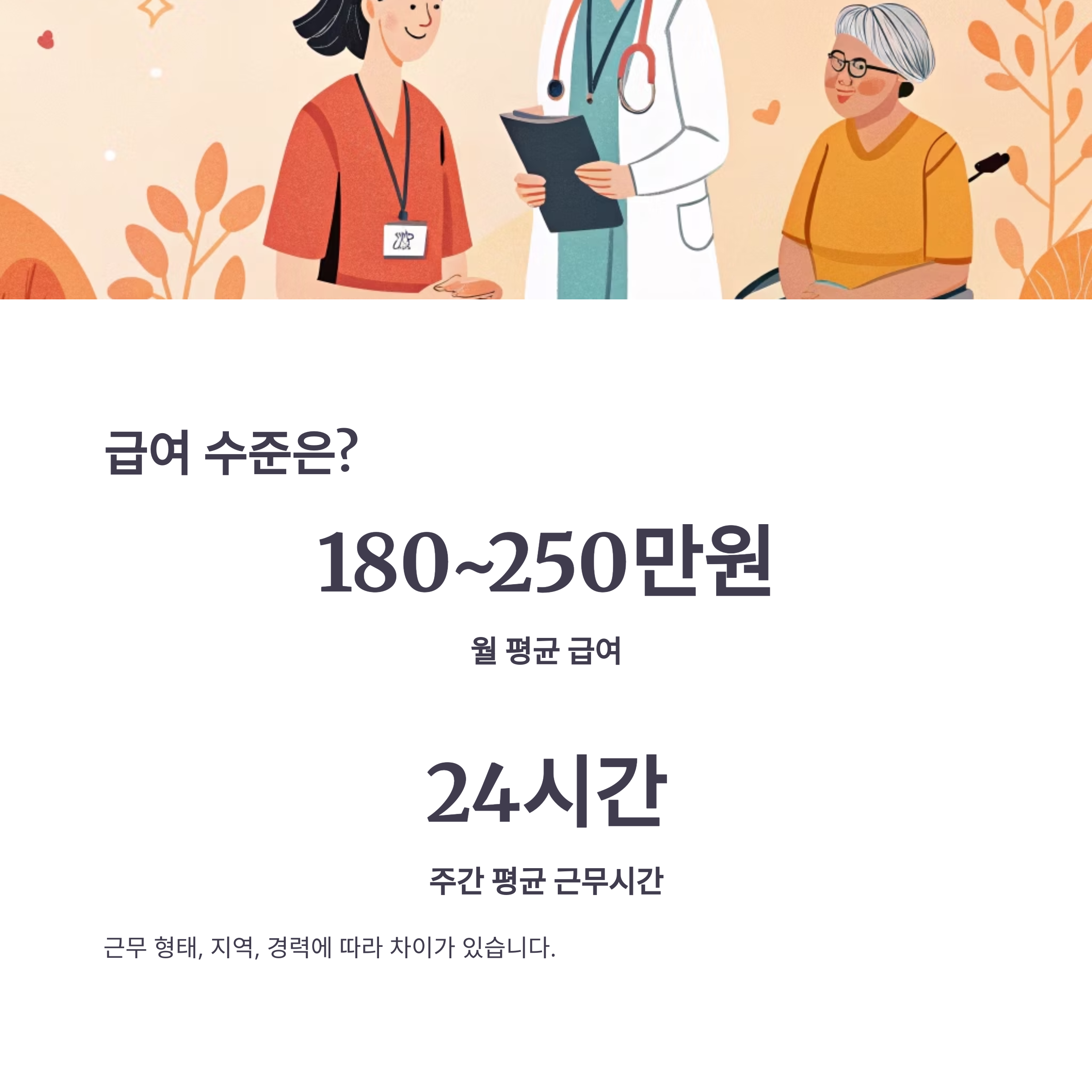 취업 시 월급은 평균 180만~250만원 수준이며, 근무 형태(정규직, 시간제), 지역, 경력에 따라 차이가 있습니다.