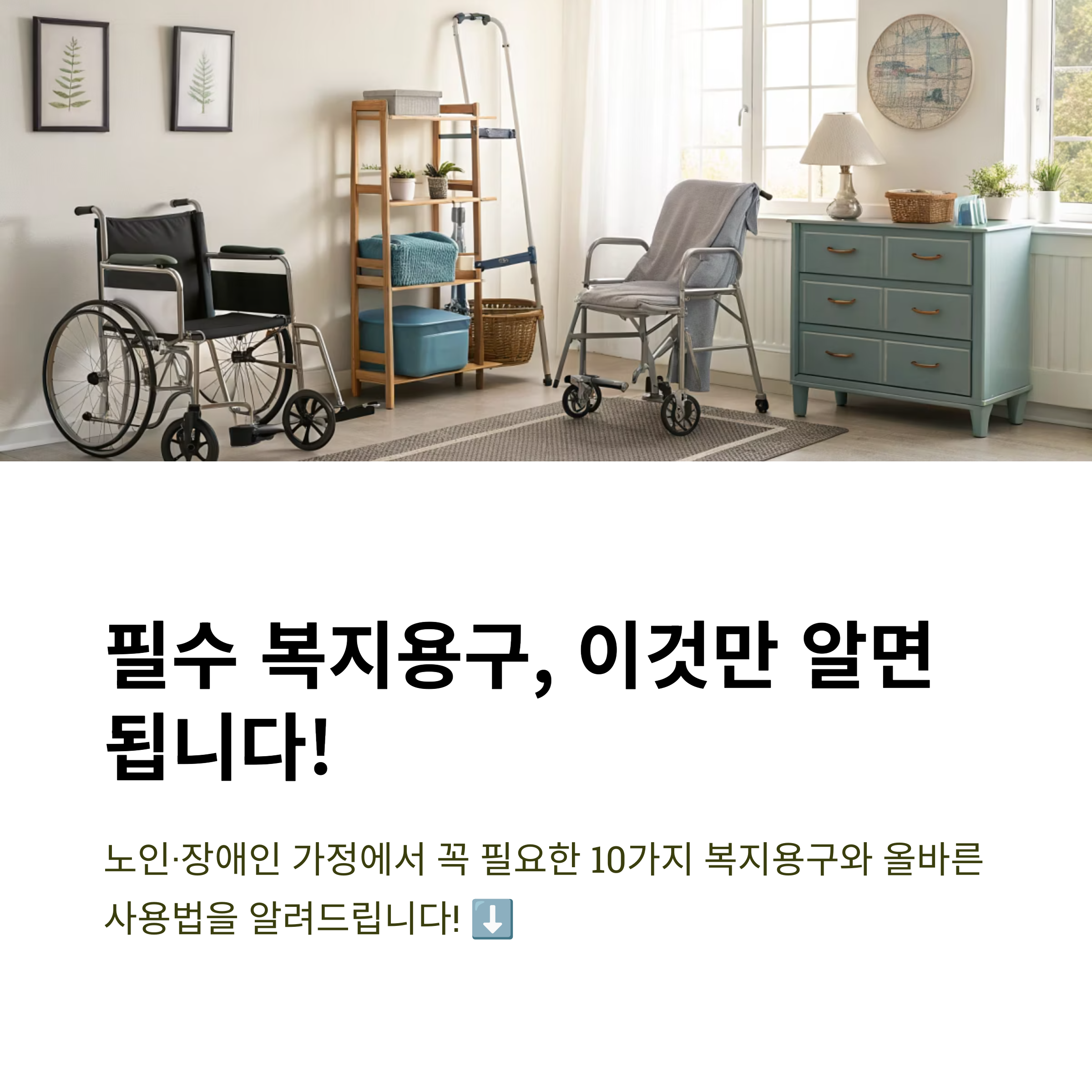 복지용구는 품목도 다양하고 각자 기능도 달라서 잘 선택하는 게 중요해요. 특히 처음 접하시는 분들은 어떻게 써야 하는지도 헷갈리실 텐데요, 여기 꼭 챙겨야 할 10가지와 올바른 사용법을 정리해봤어요 👇