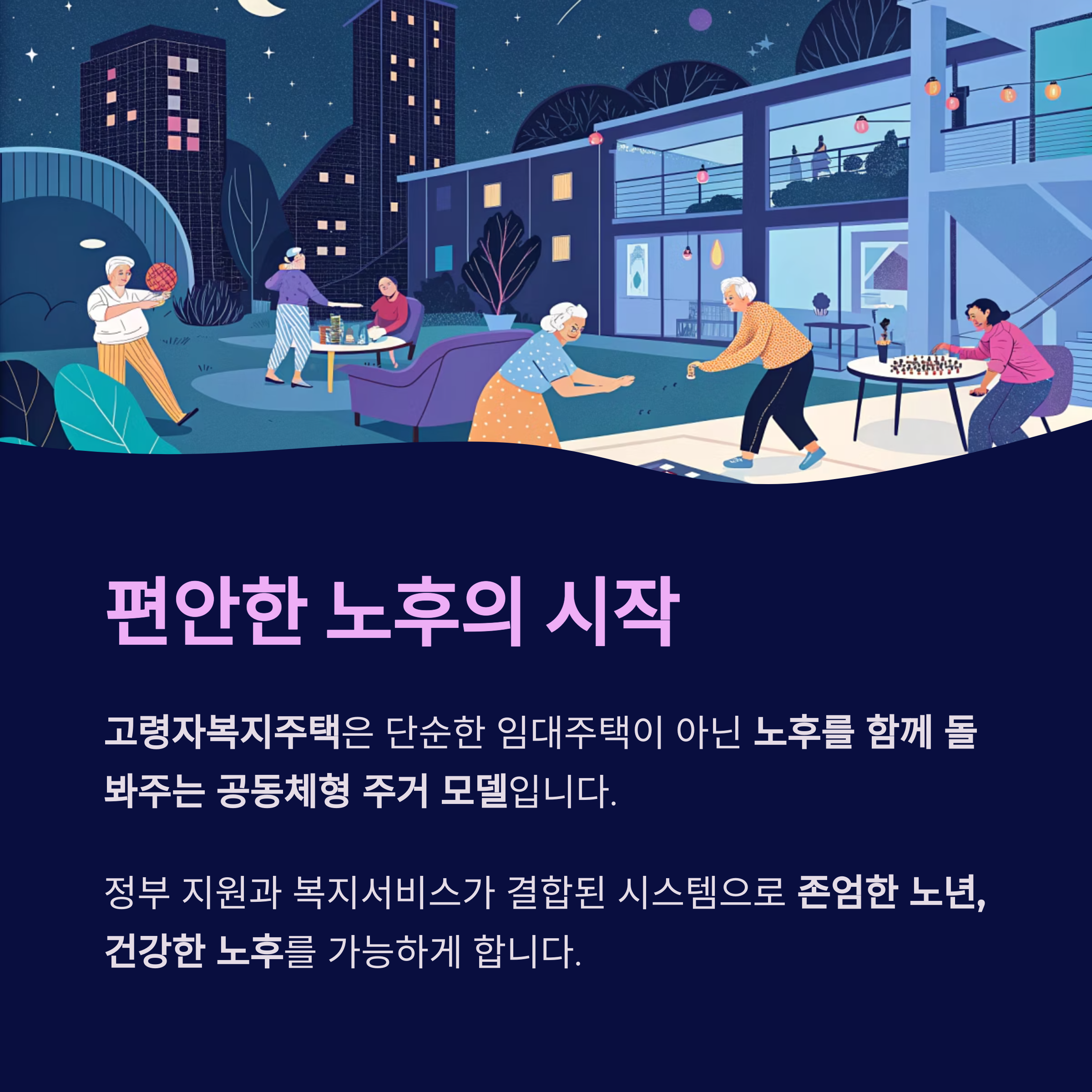 고령자복지주택은 단순한 임대주택이 아니라, 노후를 함께 돌봐주는 공동체형 주거 모델입니다.