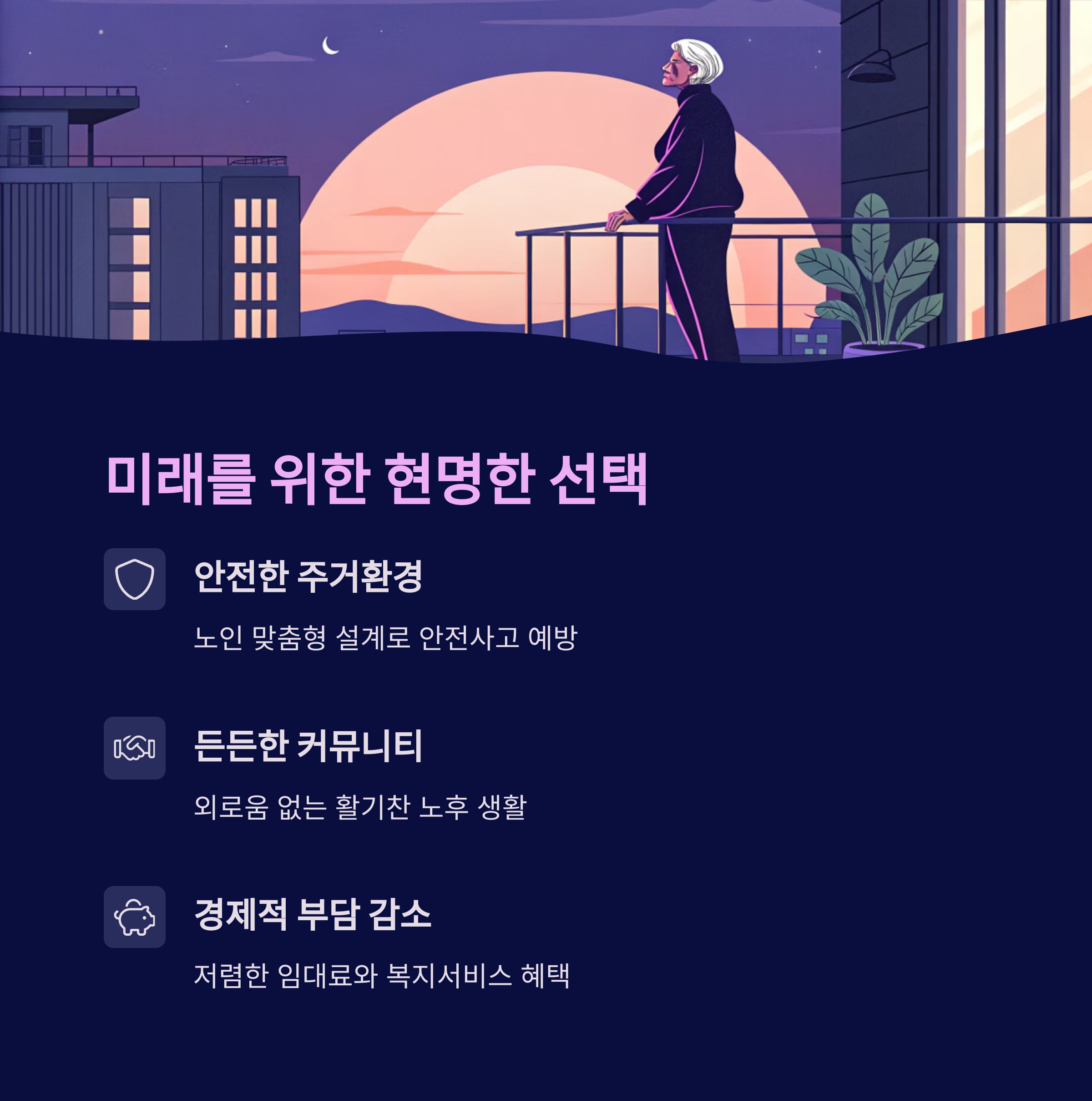 이 주택은 단순한 거주 공간을 넘어, 복지시설과 연계된 통합형 노후 지원 플랫폼으로 설계되어 있어 많은 어르신들에게 주목받고 있습니다.