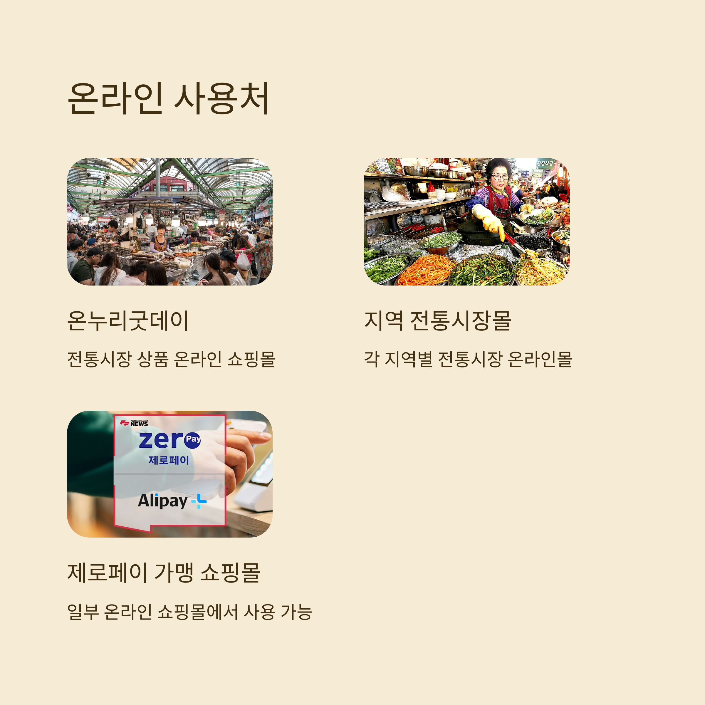 - 전통시장과 소상공인 매장에서 사용 가능