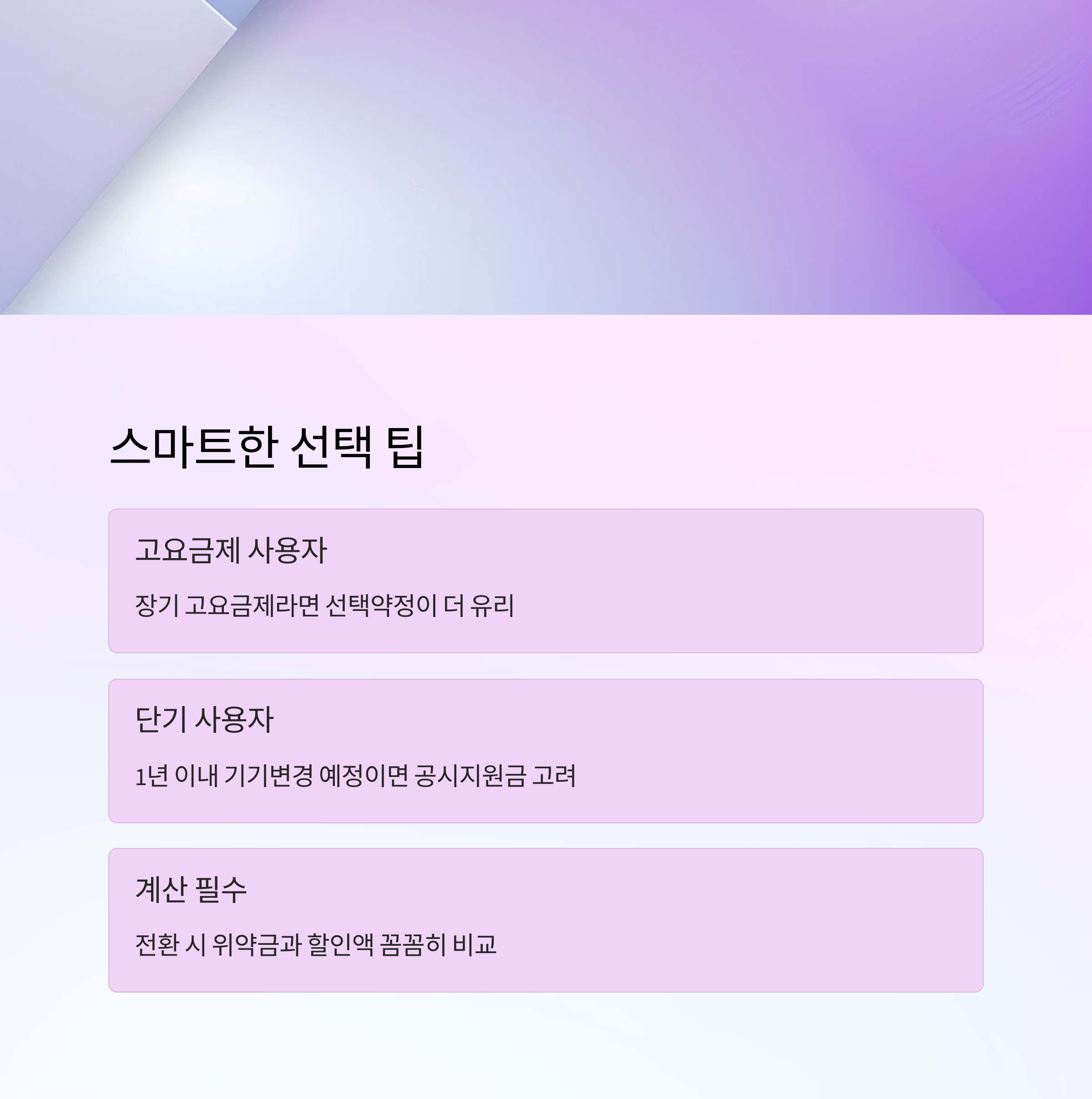 - 전환 시: 공시→선택약정 전환 시 위약금 발생 가능, 가입 전 계산 필수